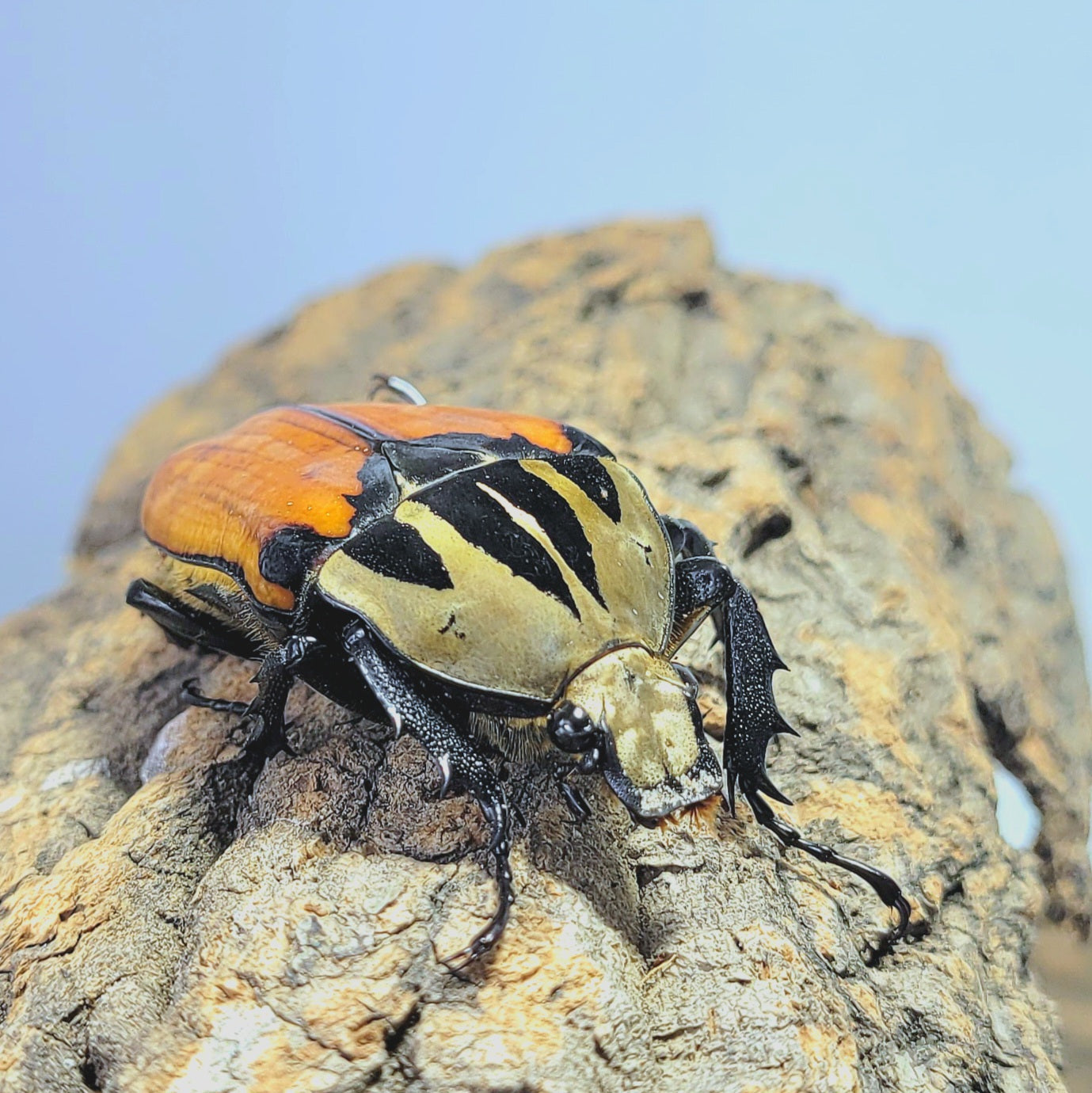 Mecynorhina oberthuri, or the Oberthuri Flower Beetle, is a visually captivating and relatively easy-to-care-for species. Their striking orange, black, and white coloration, combined with their impressive size and manageable care requirements, make them a rewarding addition to any beetle collection. With appropriate care and attention to their environmental needs, these remarkable beetles can thrive and continue to captivate their keepers.