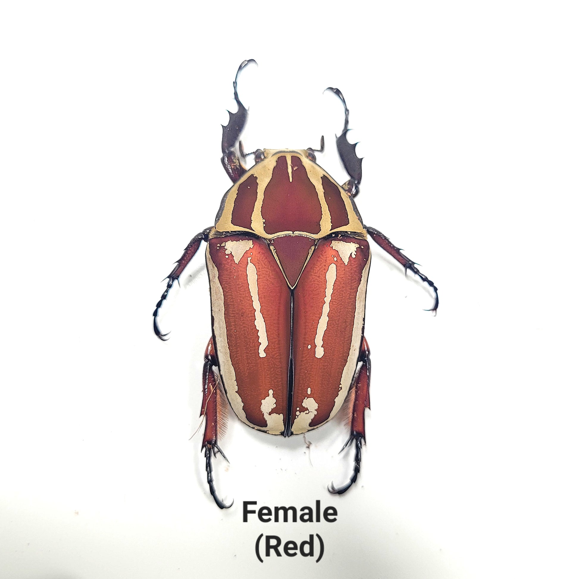 Mecynorhina torquata ugandensis "Red," is a visually stunning and relatively easy-to-care-for species that appeals to both novice and experienced beetle enthusiasts. Its vibrant red coloration, impressive size, and straightforward care requirements make it a rewarding addition to any collection. With proper care and attention to their environmental needs, these remarkable beetles can thrive and continue to captivate their keepers.