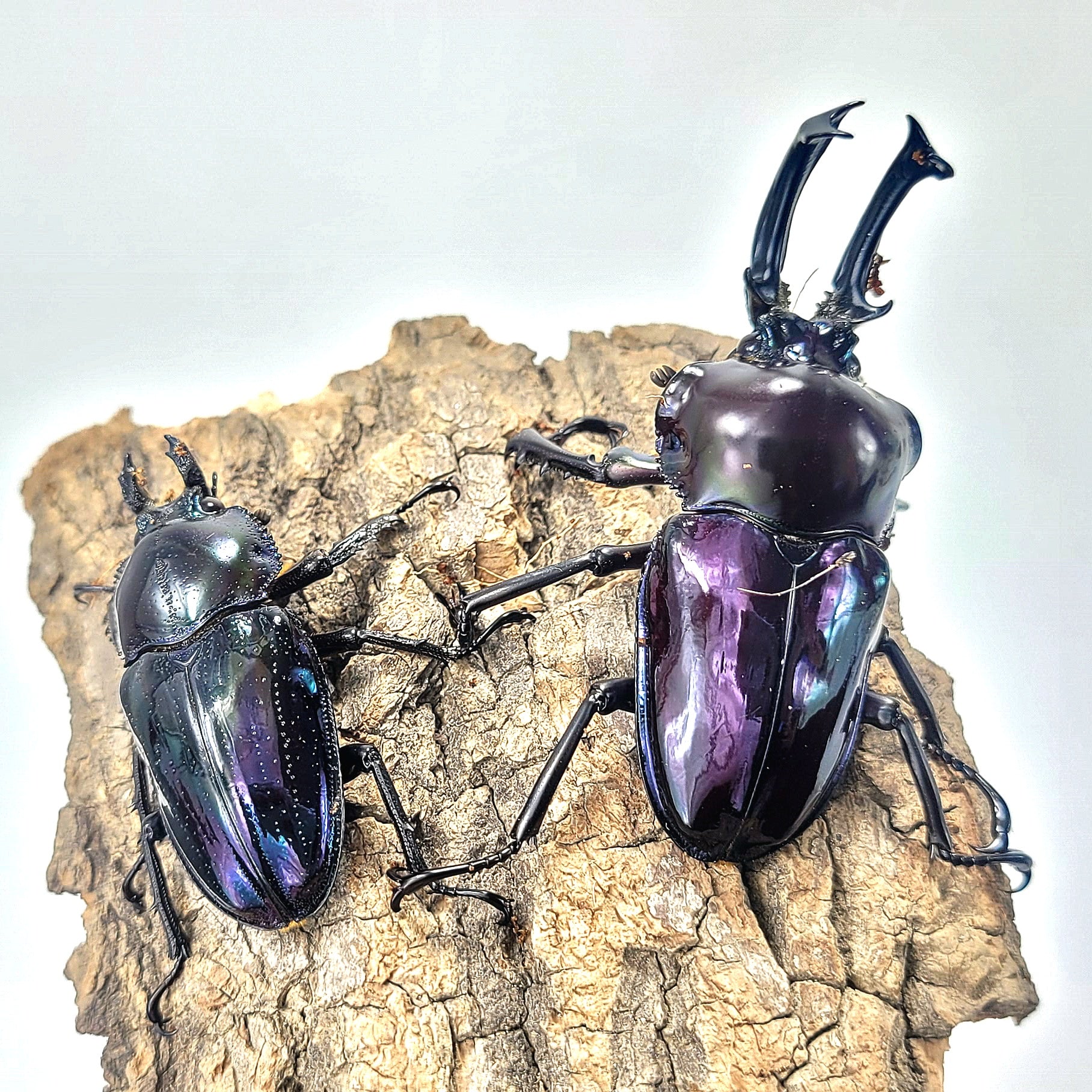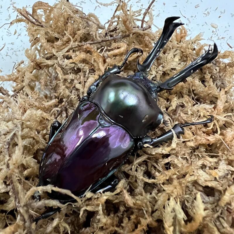 This listing is for purple genetic rainbow stag beetle adults or larva, due to uncertainty on how genetics will turn out, the larva purchased may not end up purple, for adults, we can certainly guarantee the purple color.